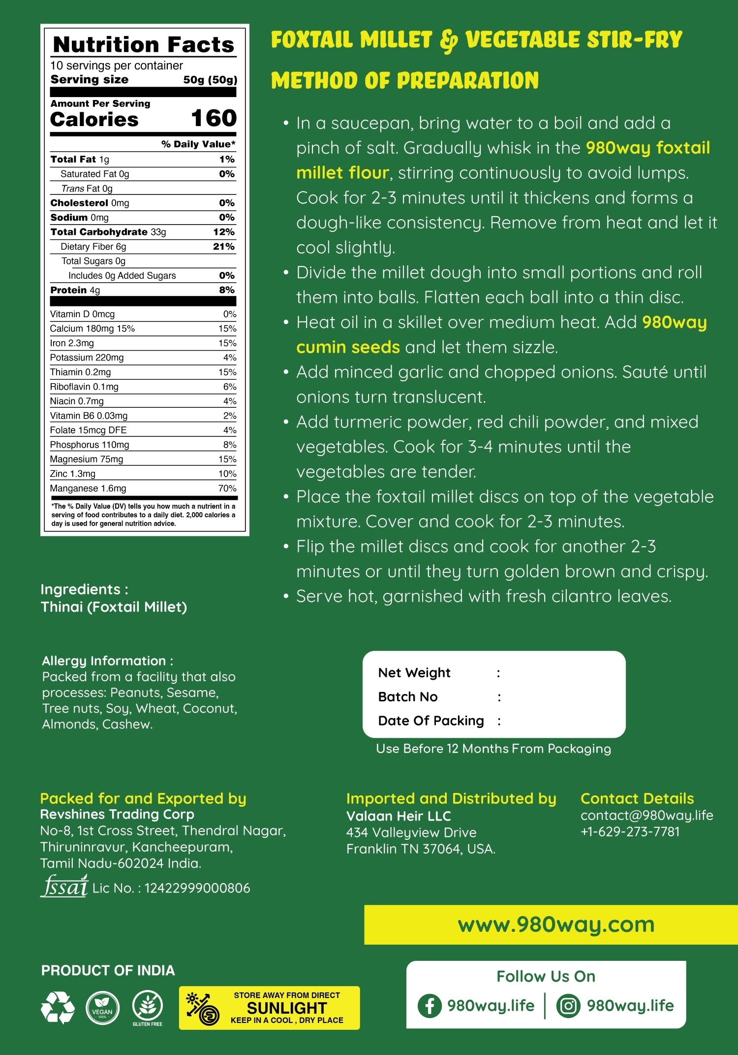 Foxtail (Thinai) Millet Flour - 500 gms (1.1 lbs)