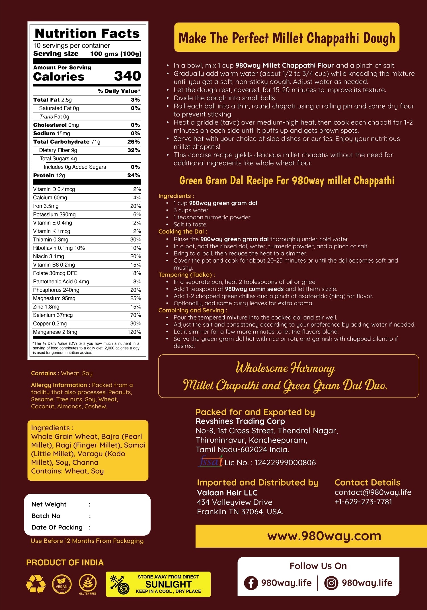 - Chapatis/Rotis: Mix the Mixed Millets Chapati Flour with water, knead it into a dough, roll out small balls, and flatten them into thin circles. Cook on a hot griddle until golden brown spots appear.