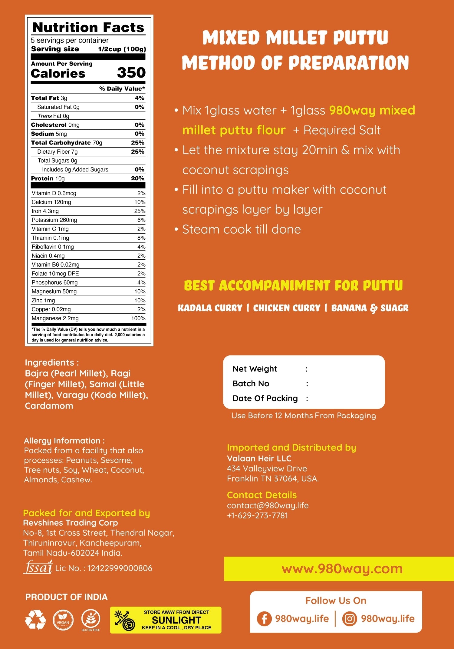Mixed Millet Puttu Flour - 500 gms (1.1 lbs)