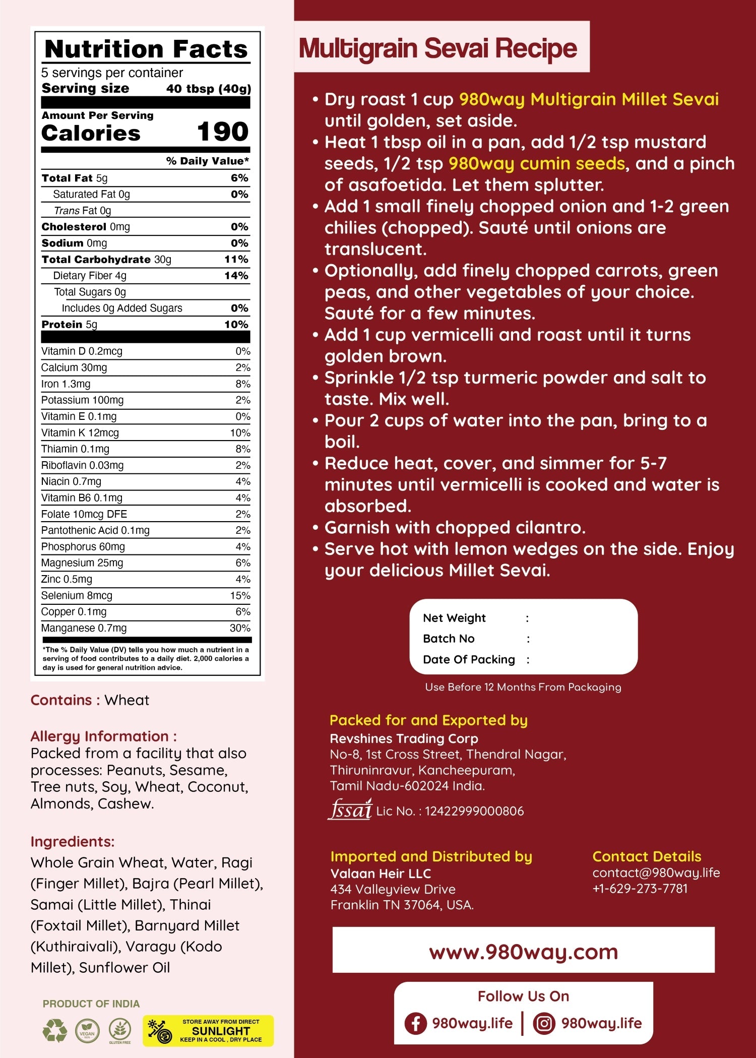 Multigrain Millet Vermicelli (Sevai) - 200 gms (7.06 oz)