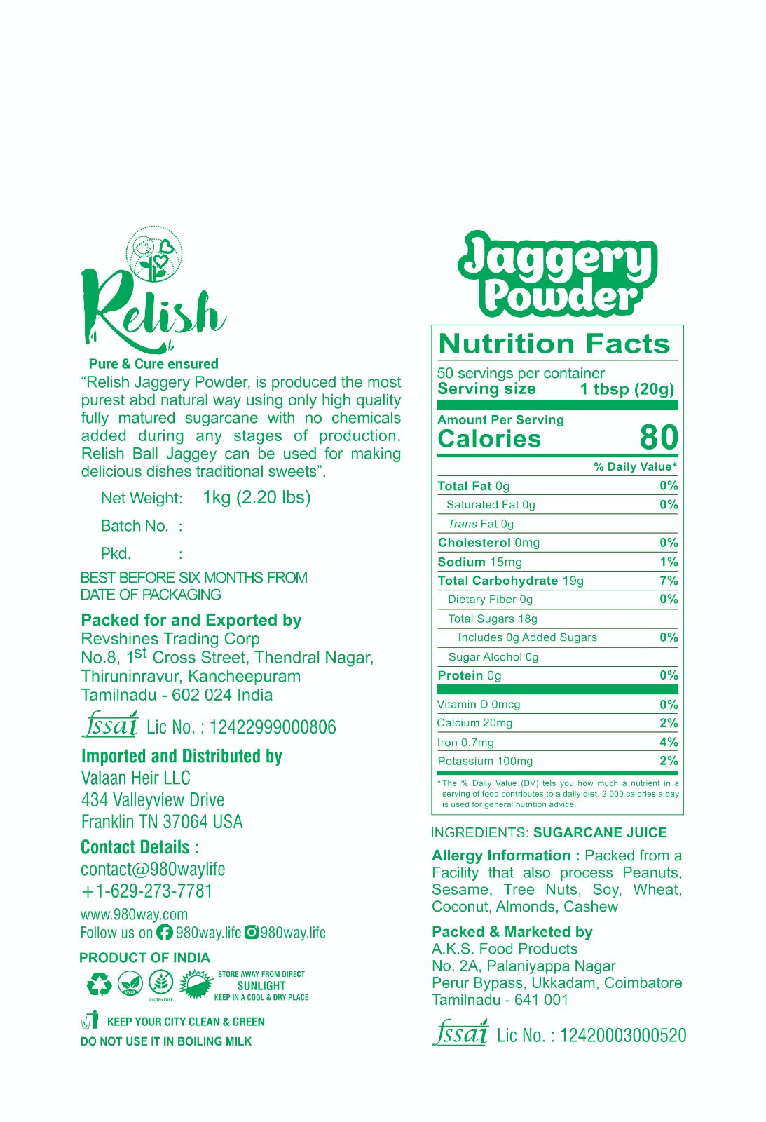 Unrefined Cane Sugar Granules (Jaggery Powder) - 1000 gms (2.2 lbs)