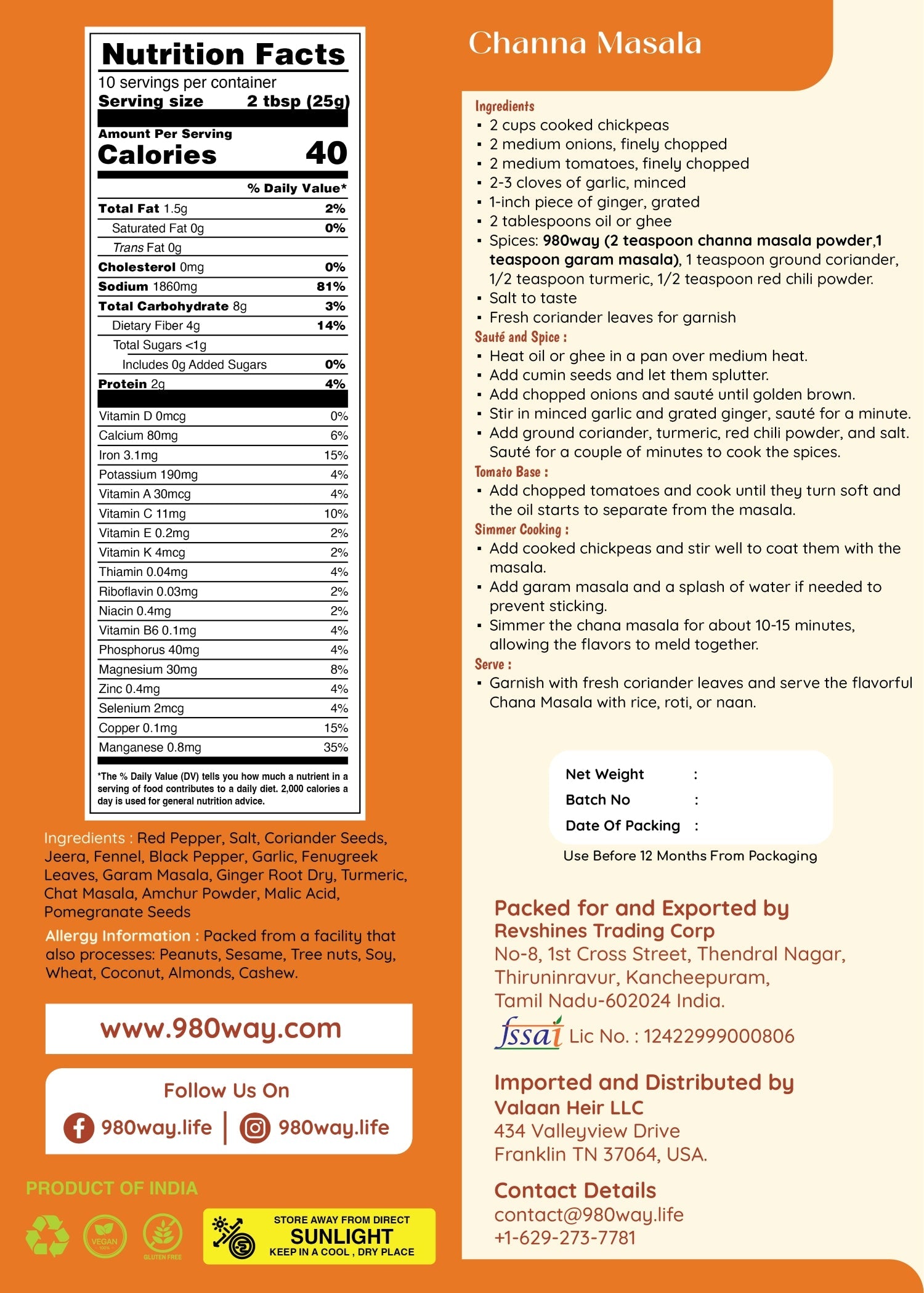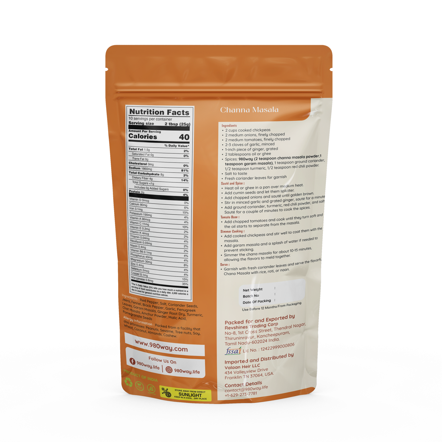 Channa (Chick Peas) Masala Powder is a versatile Indian spice blend that adds rich flavors to your dishes. Crafted with a blend of traditional spices, it enhances the quality, flavor, and authenticity of your meals. This convenient seasoning can be used to create delicious Indian curries, snacks, and more, providing a heritage-rich taste with health benefits. Experience the convenience and versatility of this spice mix as you explore the vibrant world of Indian cuisine.