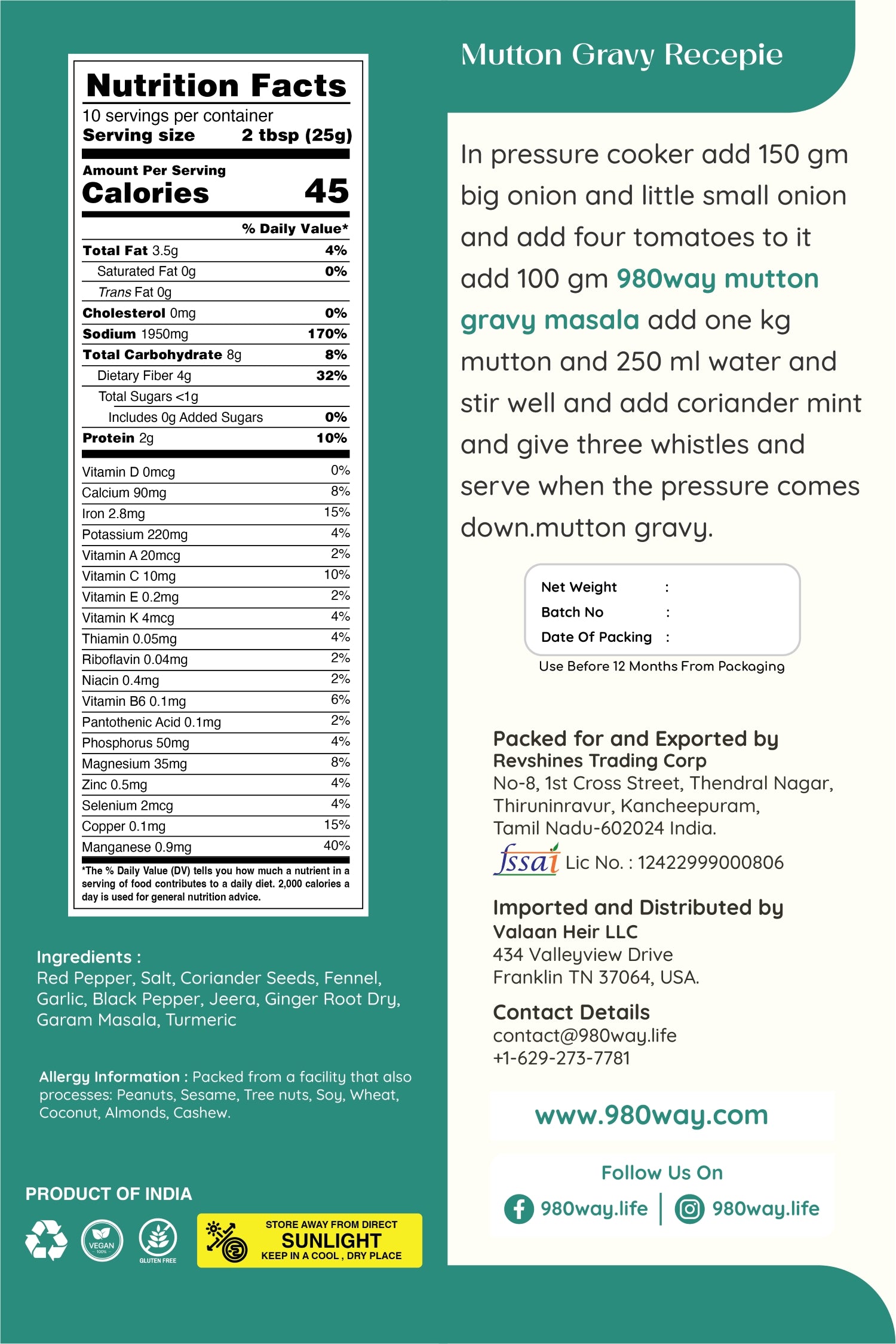 - Use Mutton Gravy Masala Powder as a seasoning for grilled or roasted mutton chops.