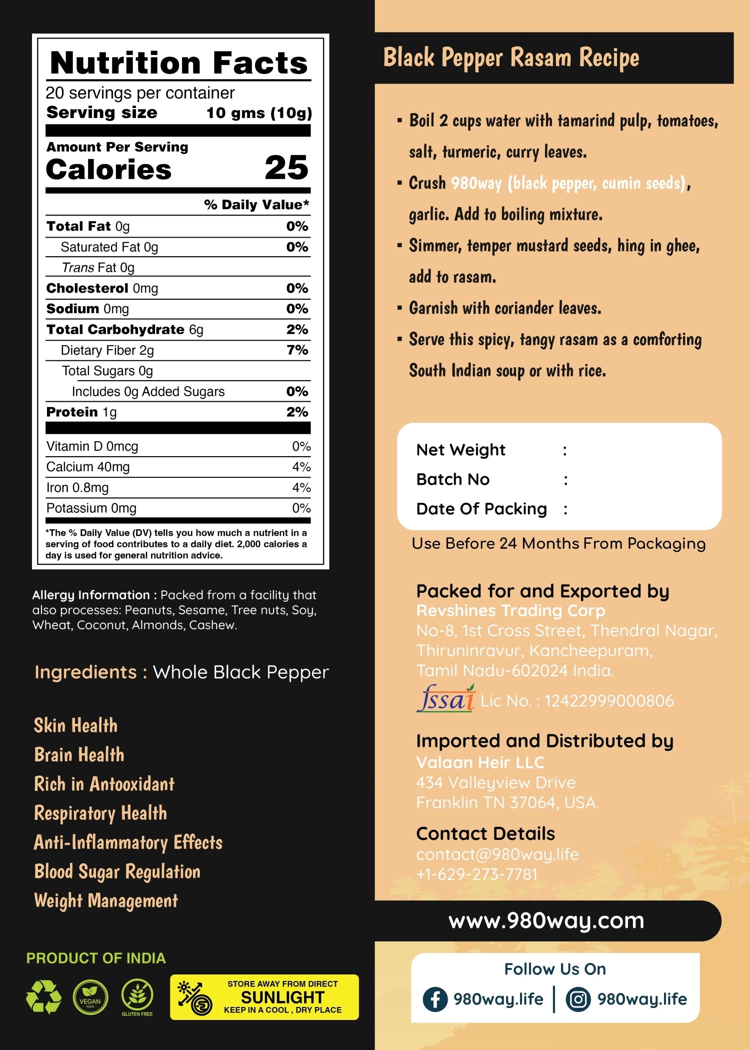 - Curries and Gravies: Crush or grind whole black pepper and add it to various curries, gravies, and sauces for flavor and aroma.